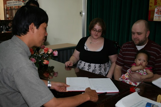 Signing the documents (it really did kind of feel like buying a house, what with all the signing, only everything was in Vietnamese--a little unnerving)