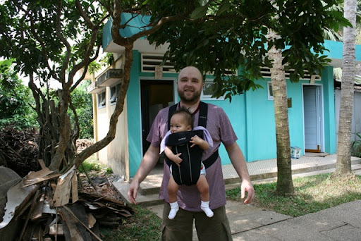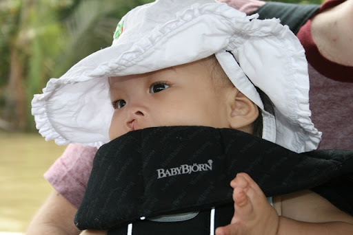 I highly recommend some type of baby slingy-thingy. It makes life sooooo much easier when one's tramping through a jungle or some other such terrain.