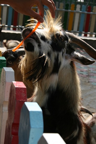 There are carts around the zoo that sell little bits of food that can be fed to the animals. People were feeding what seemed to be sugar cane sticks to the elephants and the elephants were all kinds of excited.
